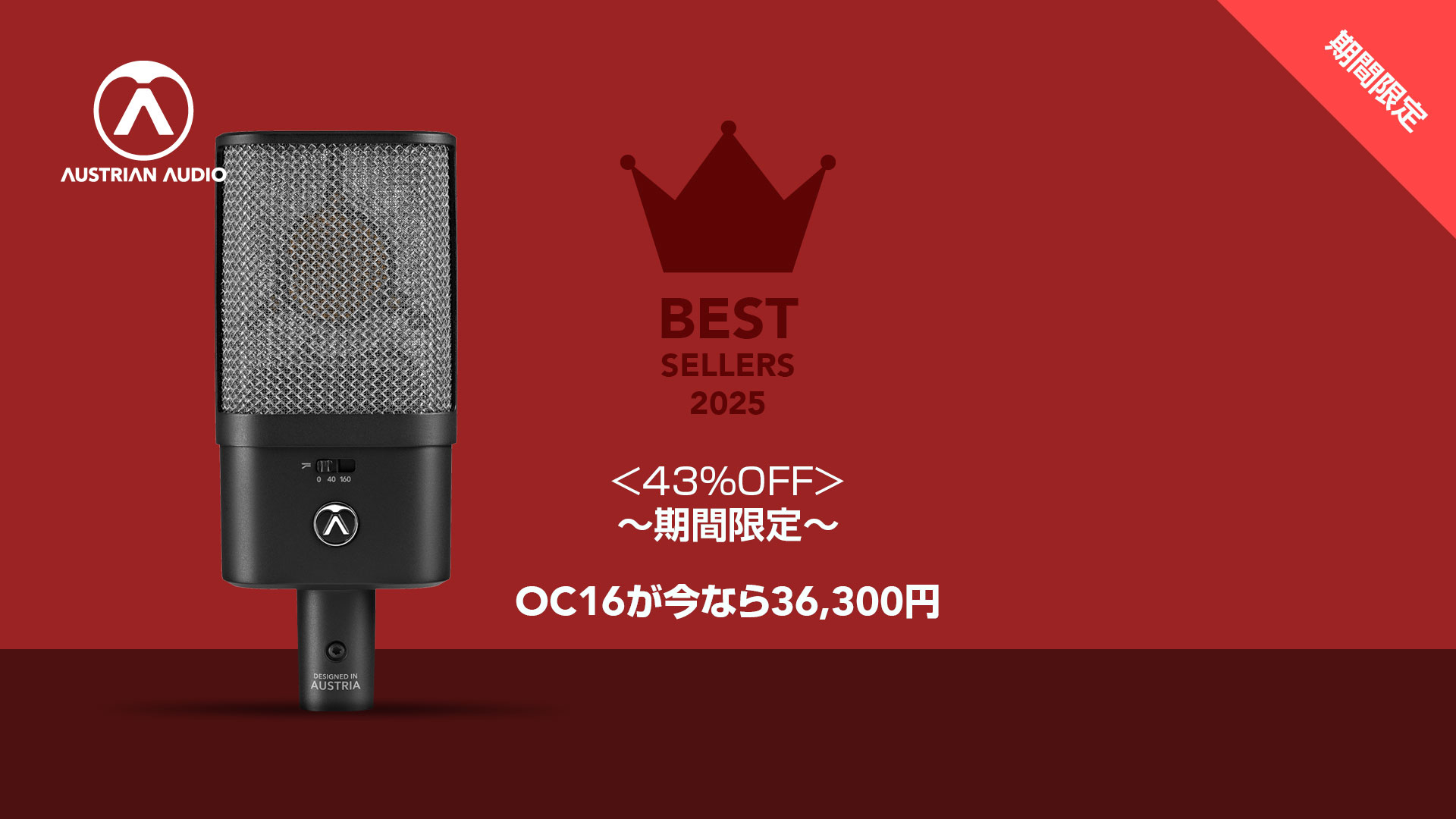 Austrian AudioコンデンサーをリーズナブルにAustrian AudioのOC16は、伝説的なCK12カプセルと同じクリティカル・ディメンションでデザインしたCKR6シングル・セラミック・カプセル、タッチノイズに強いオープン・アコースティック・テクノロジー、2段階のハイパス・フィルターを搭載し、ファースト・コンデンサーにも理想的な単一指向性マイクロフォン。 ボーカル、アコースティック・ギター、ピアノ、管楽器、弦楽器、ドラムからエレキ・ギターまで、様々なソースに対応できるオールラウンダーに仕上がっており、プロ譲りのクオリティと堅牢性、数々の賞を受賞するAustrian Audioのラージ・ダイアフラム・サウンドをリーズナブルに手に入れることができます。 |