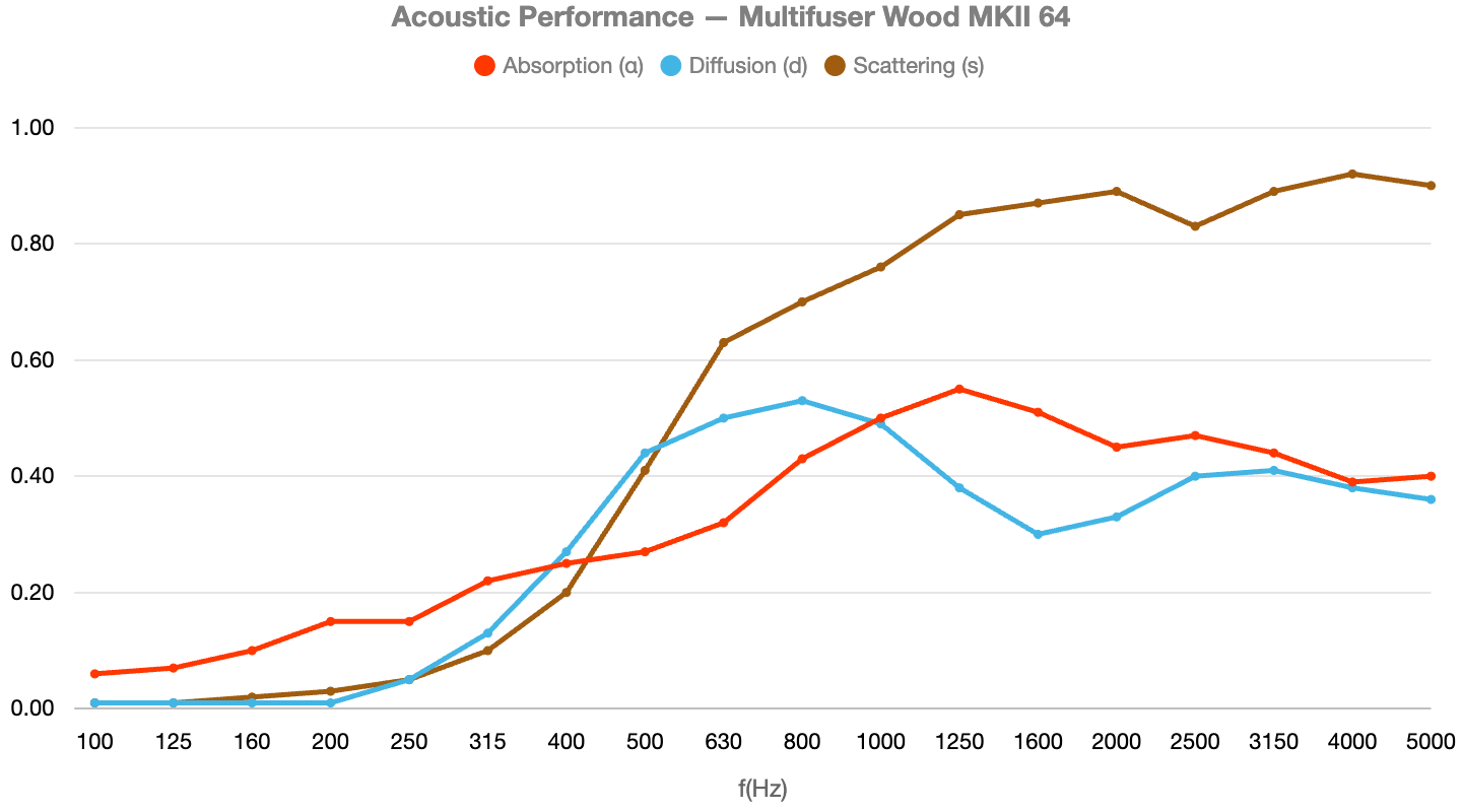 Multifuser Wood MKII 64は、2次元拡散パネルMultifuserのウッド製プレミアム・モデルです。過度な吸音を避けつつ効果的な拡散が必要なスペースに理想的で、64モデルは4つのパーツで構成。各パーツは異なる方向に回転させることができ、特に中高音域の拡散効果を高めます。優れた音響効率に加え、その美しいデザインは様々なスペースにマッチし、ナチュラル・ウッド、ブラック、ホワイト、メタリック・カッパー、メタリック・ゴールドの4カラー展開(ナチュラル・ウッドは無垢材製、マットとメタリックはラッカー塗装のMDF製)です。